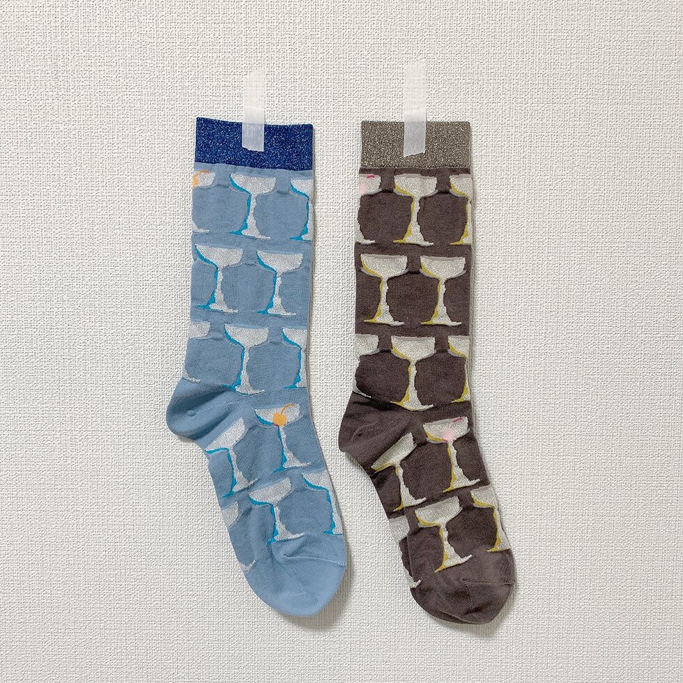 煌めくラメ糸と共に、可愛らしいさくらんぼが所々に散りばめられたこのソックスは、足元に華やかさと遊び心を添えます。爽やかなライトブルーの色合いが、コーディネートに新たな風を吹き込みます。