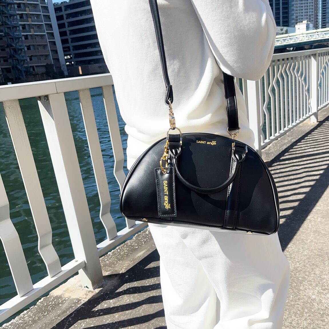 半月型シルエットが美しい、小さく見えて沢山入るミニボストンバッグ。2wayハンドル仕様で、ショルダーとしてもハンドバッグとしてもお使いいただける使い勝手の良さも魅力です。